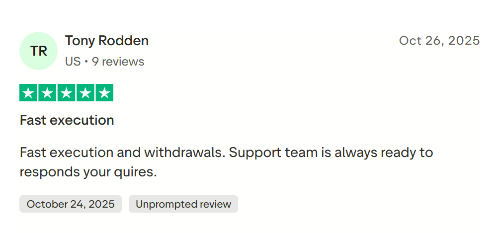 Смысл этого комментария прост: клиент удовлетворён общим уровнем сервиса и особенно выделяет оперативность ответов на свои вопросы. Во многих обсуждениях пользователи указывают, что качественная поддержка и отсутствие «тишины» в моменты, когда нужна помощь, — один из ключевых критериев при выборе брокера. В сочетании с технической стабильностью это формирует ощущение надёжности и снижает психологическую нагрузку при торговле.